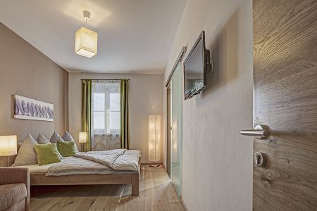 Die Wohnung ist wahlweise mit einem oder zwei Schlafzimmern zu mieten. Das zweite Schlafzimmer verfügt über ein eigenes Bad und WC.
